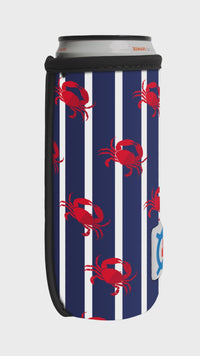 Design: Red Crabs on Blue & White Seersucker Backdrop